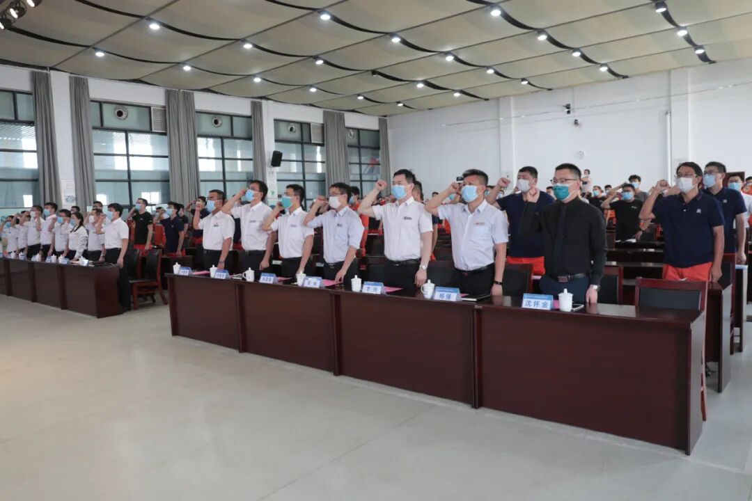 线上线下职工代表共同宣誓:我们将立足专业,追求卓越,争做工匠精神的传承者;勤学苦练,精进技能,争做工匠精神的先锋者;不忘初心、坚定信仰,争做工匠精神的坚守者。