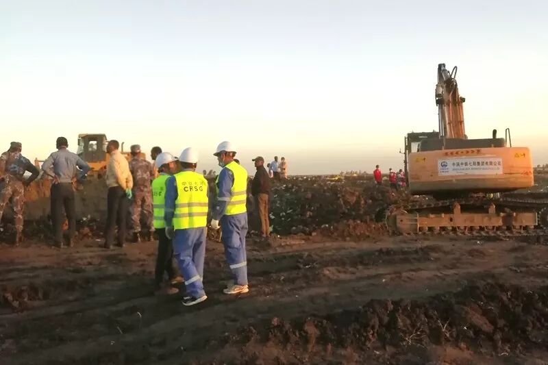 中国中铁七局埃塞俄比亚公司接到中国驻埃塞俄比亚大使馆救援通知后,公司负责人王光辉立即带领约20人的救援队伍和机械设备,于下午3点半左右到达坠机现场,配合埃塞俄比亚航空公司全力开展救援工作。