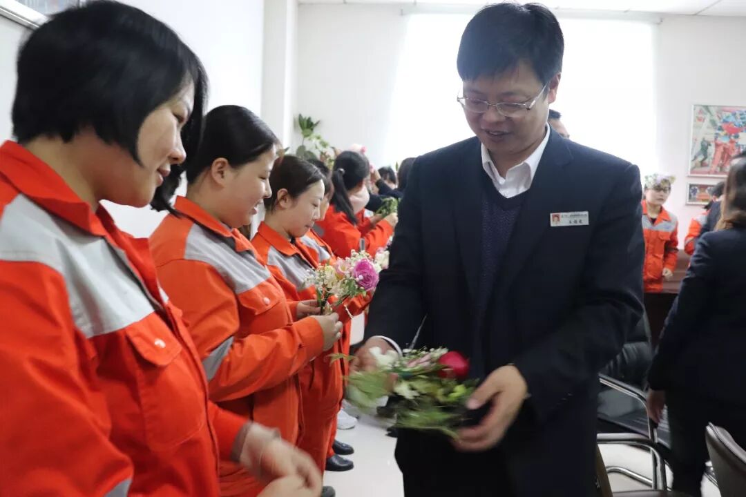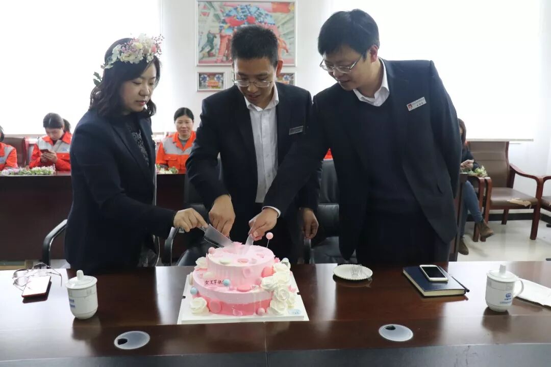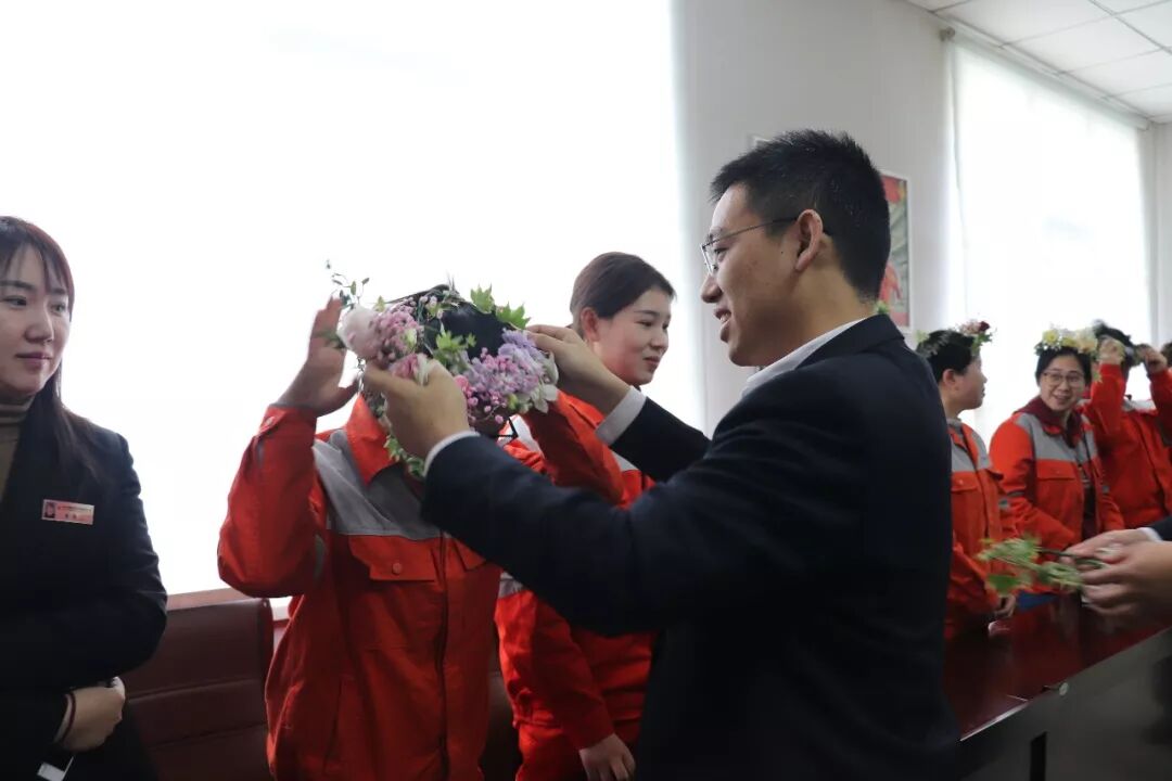 座谈会期间公司人力资源部部长、女工委主任李桂萍首先向全体女工传达了两会精神,王书记为获得盾构公司“2018年先进女工工作者”及“2018年先进女工”进行了表彰并颁发证书。本次座谈会特意为广大女工准备了女神花环和蛋糕,郑部长、袁主任和王书记相继为30余名女工亲手佩戴了花环,并亲手切开了女神蛋糕,使广大女职工在女神节当天实现了“女神”梦。