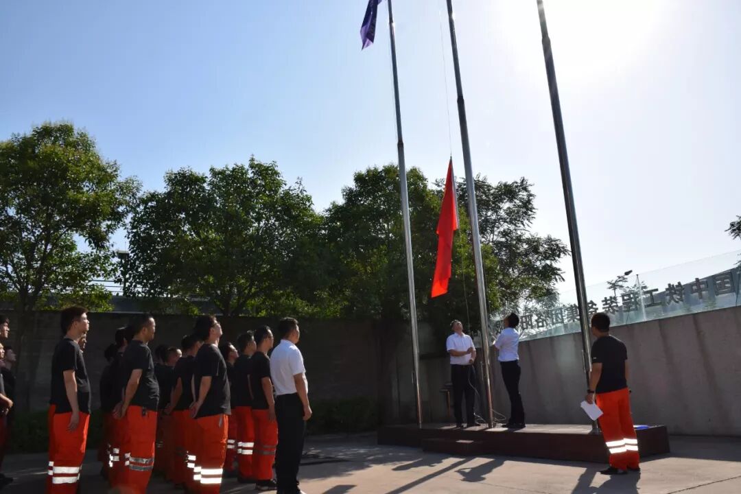 清晨,护送国旗的旗手们迈着矫健的步伐缓缓进场,伴随着庄严的国歌,鲜艳的五星红旗冉冉升起,全体人员面向国旗行注目礼,广大职工深怀对祖国无限的热爱和崇高的敬意,共同祝愿伟大的祖国繁荣昌盛,祝福公司下一个十年再创新辉煌。