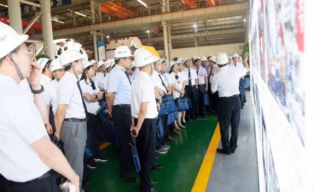 7月5日,黄河水利委员会(以下简称:黄委会)100余名处级干部学员到中铁装备参观交流并开展黄委会2019年中青年干部培训班,双方就产业现状、技术研发、产品设计、未来发展等领域展开交流。黄河勘测规划设计研究院有限公司(以下简称:黄河设计院)董事长张金良,中铁装备集团党委书记、董事长谭顺辉,副总经理赵华陪同交流。