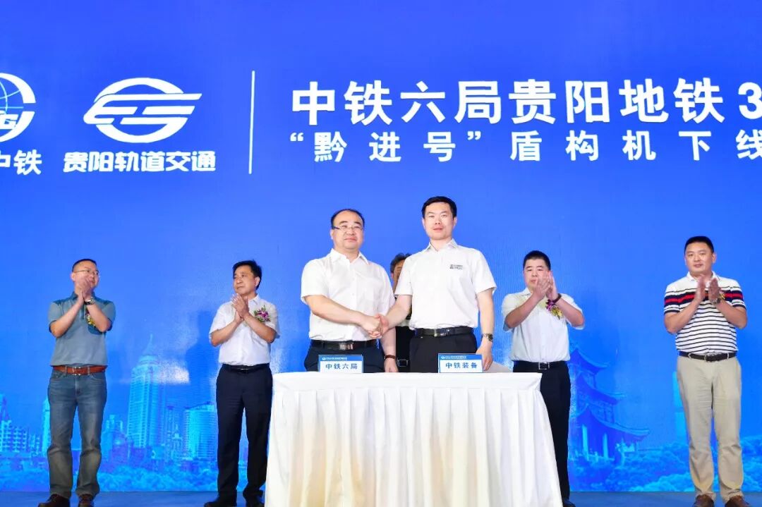7月15日,中铁装备为中铁六局设计制造,用于贵阳地铁3号线的“黔进号”盾构机在河南郑州下线,这是首台用于贵阳地铁建设的盾构机。贵阳市城市轨道交通有限公司总工程师陈发达、中铁六局集团有限公司副总经理李永青、贵阳轨道交通三号线一期工程建设管理有限公司总工程师王祥、中国中铁股份有限公司贵阳轨道交通3号线一期工程指挥部总工程师何晓勇、上海市城市建设设计研究总院(集团)有限公司副总工程师齐明山、中咨工程建设监理有限公司总监理工程师张胜伟、中铁装备副总经理赵华等领导出席下线仪式。中铁装备副总经济师朱有伟主持仪式。