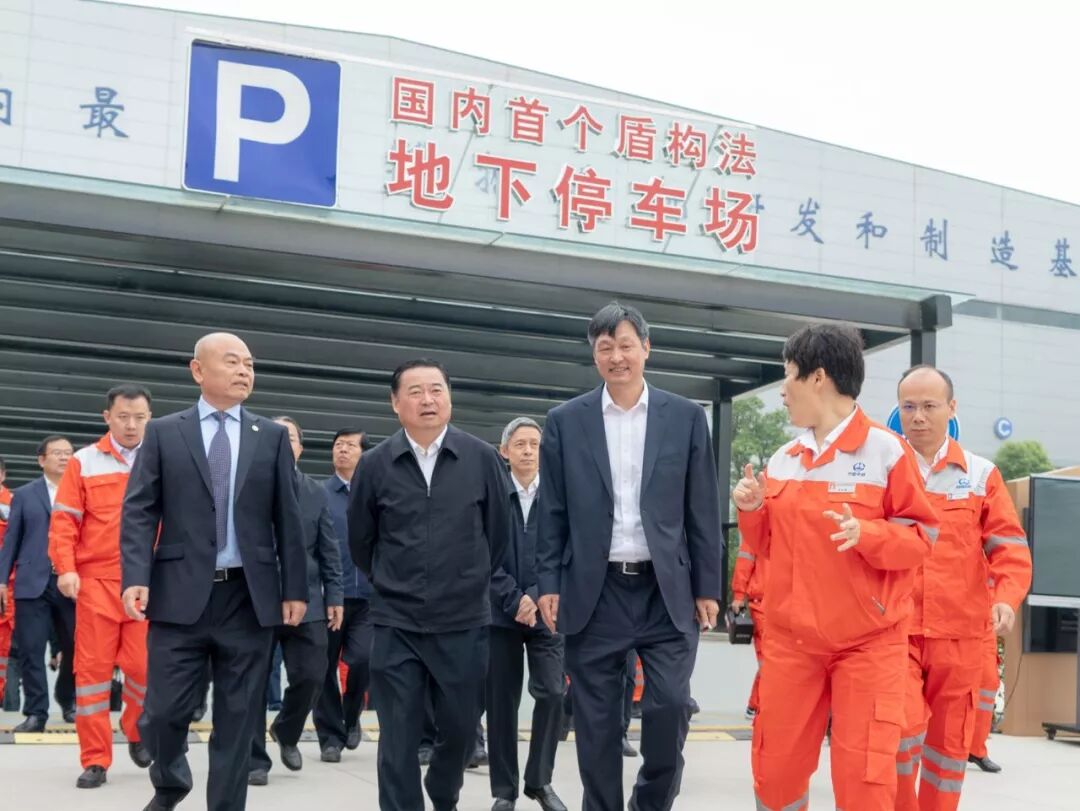 在国内首个盾构法施工地下停车场,现场观看了世界领先的工法和装备,看到企业可以在不破坏地面的情况下开挖地下停车场,郝鹏书记连连称赞并指出,这项先进技术对于老旧小区开发地下空间、改善人们生活环境具有很大帮助。