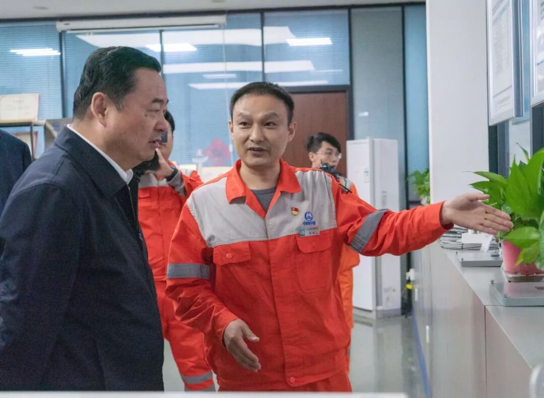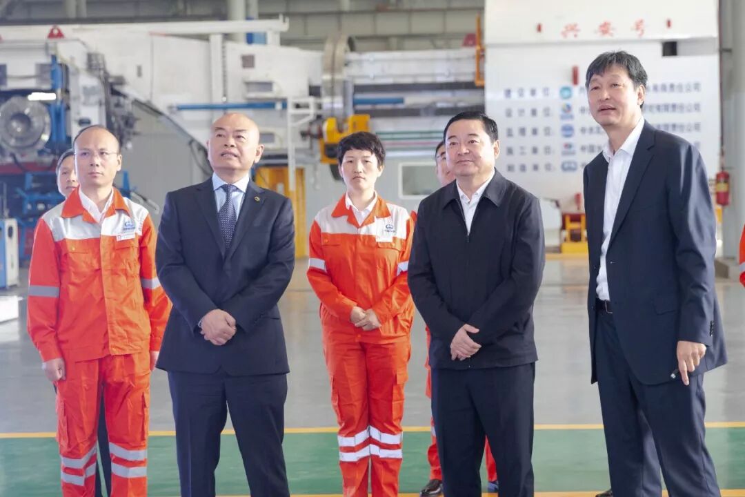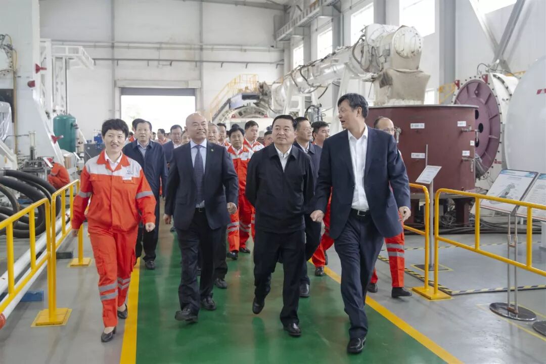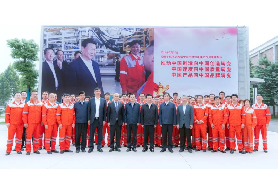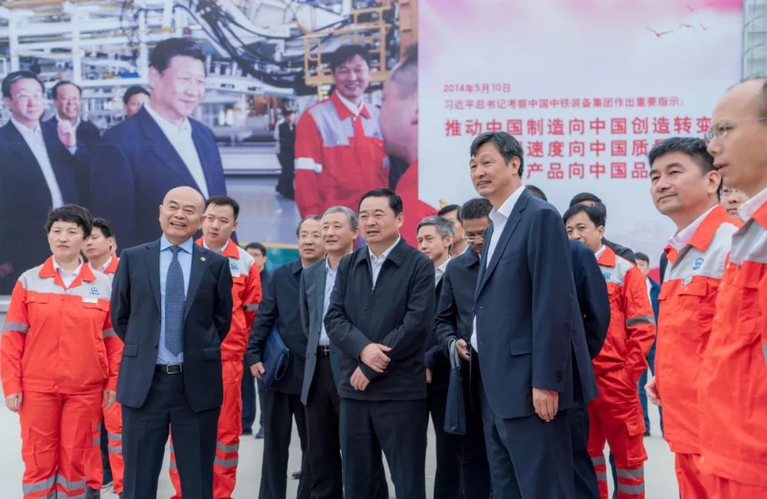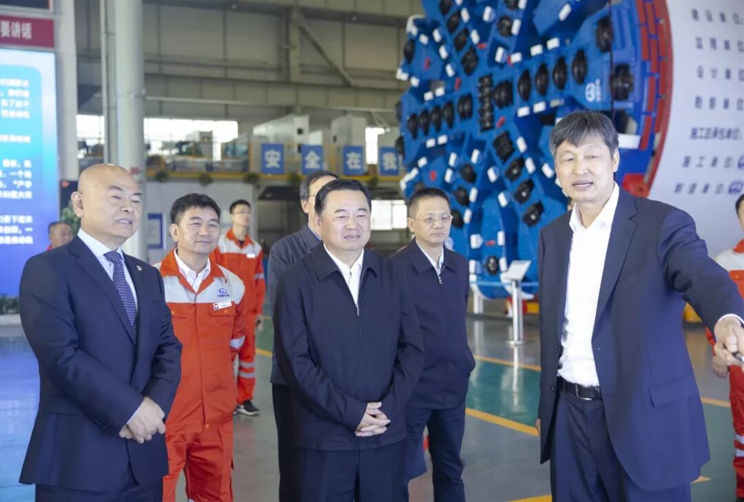 郝鹏书记一行走进中铁装备盾构总装车间,与全体人员一起重温了2014年5月10日习近平总书记考察中铁装备时关于“推动中国制造向中国创造转变、中国速度向中国质量转变、中国产品向中国品牌转变”的重要指示精神。