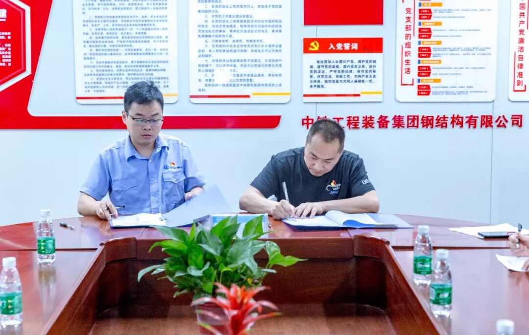 随后,双方党员同志来到钢结构公司党建工作室,依托天目山项目后配套拖车的工期和质量保证进行交流。首先,双方支部书记分别介绍本支部的基本情况,钢结构公司后配套项目部负责人从项目建设情况、生产进度情况、工期保证措施、质量保证措施、人员投入情况、机械设备投入情况和各项技术支撑八个方面进行了详细说明。盾构公司三支部书记吴毅、盾构公司天目山项目负责人郭瑞志就焊接过程和焊缝质量以及相关注意事项提出建议。随后双方党员同志还就人员培养、技能提升等方面问题进行了交流。