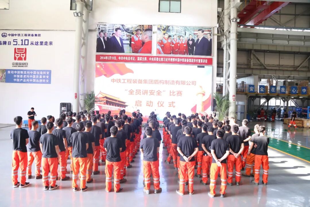 6月11日8:15,100名人员齐聚盾构公司总装车间开展了“全员讲安全”启动仪式,其中包含7名评委和27名参赛选手。