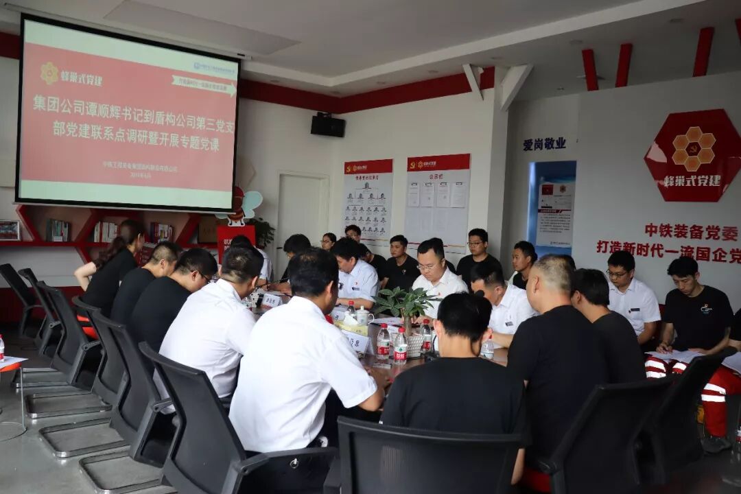 为进一步加强对基层党建工作的领导和指导,更好落实全面从严管党治党要求,推进从严治党向基层延伸。6月25日,集团公司党委书记、董事长谭顺辉到盾构公司第三党支部调研,并向支部党员讲授专题党课。集团公司党委工作部部长王伟,盾构公司党委书记、执行董事王俊龙,党委副书记、副总经理(主持行政工作)许发成、副总经理王豪陪同,公司第三党支部党员及盾构公司中层干部共计30余人参会。