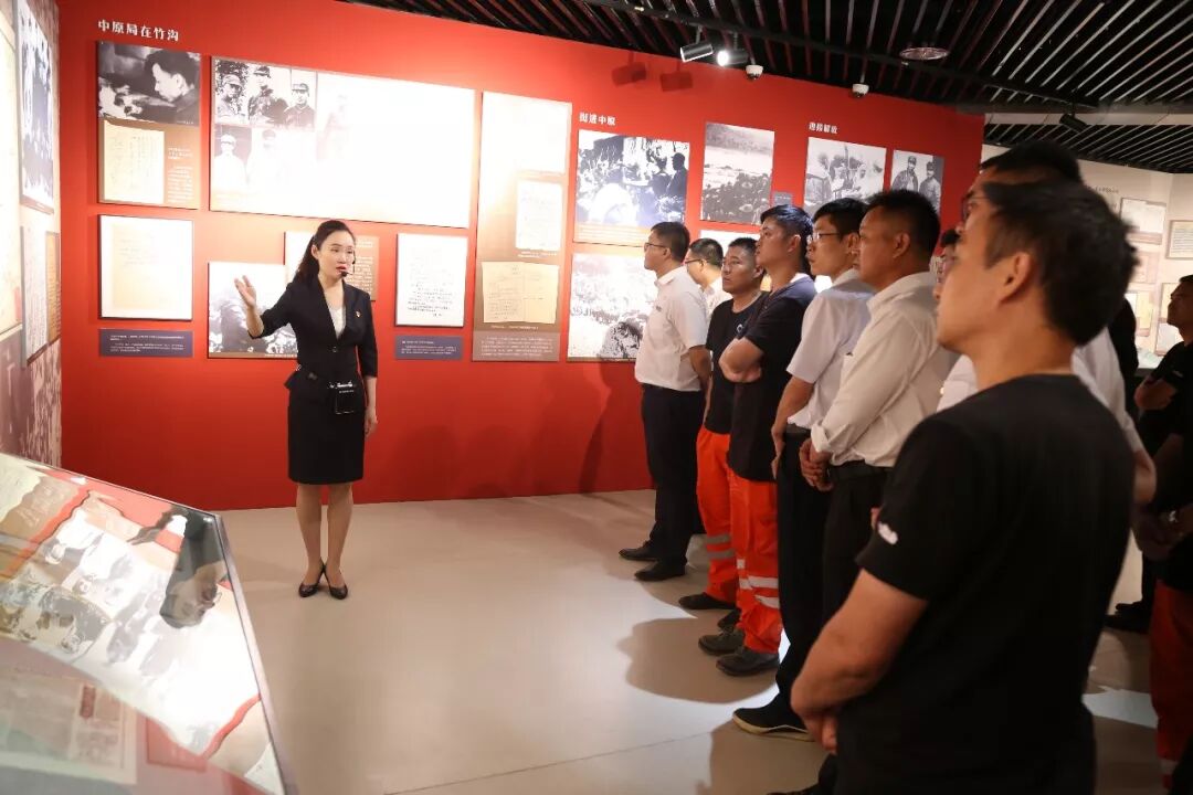 最后,大家驱车一行来到河南省博物院参观了“不忘初心、牢记使命”主题教育档案文献展,接受党史教育,继承和发扬党的光荣传统。在讲解员的引导下,大家依次参观了“理论探索”、“理想信念”、“不懈奋斗”、“牢记使命”、“自身建设”及“出彩中原”六个展区,文献展以中央档案馆提供的珍贵档案文献资料为基础,以全省重要档案文献资料为补充,突出河南特色,再现了河南人民在中国共产党领导下进行革命斗争的光辉历程。在参观过程中,大家倾耳聆听讲解,驻足细看展图,仔细研读史料,用心感悟初心和使命。当在展馆内看到中铁装备盾构机信息时,大家无不为之自豪和骄傲。在鲜红的党旗面前,党员们重温了入党誓词。