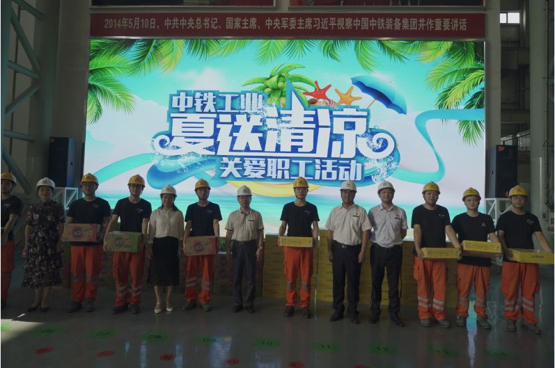 7月26日,中铁工业工会副主席曾忆陵到盾构公司开展“夏送清凉”活动,为奋战在车间一线员工送上清凉慰问品。中铁工业工会主管董慧,集团公司党委副书记、纪委书记、工会主席卜照华,集团公司工会办主任、机关工会主席袁丽敏,盾构公司党委副书记、纪委书记、工会主席金志强等陪同慰问。