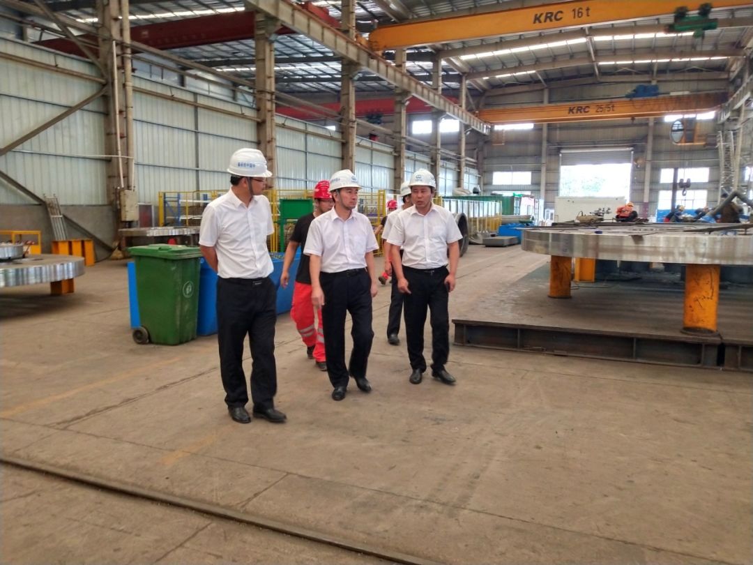 谭书记首先详细询问了洛阳公司结构件制造业务开展的情况,并深入车间一线检查了在制的螺旋机、驱动箱、盾体等产品,对洛阳公司从无到有,到现在小批量生产所取得的成绩表示肯定,鼓励大家在保证安全的前提下为集团公司产业园的投产打下基础。