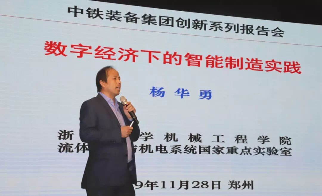报告会上,杨华勇院士做了题为“数字经济下的智能制造实践”的报告,报告以智能制造行业先进技术发展方向为主线,以大飞机制造等复杂离散制造行业智能制造实践为例,讲述了在大数据背景下的智能制造行业发展趋势和方向。