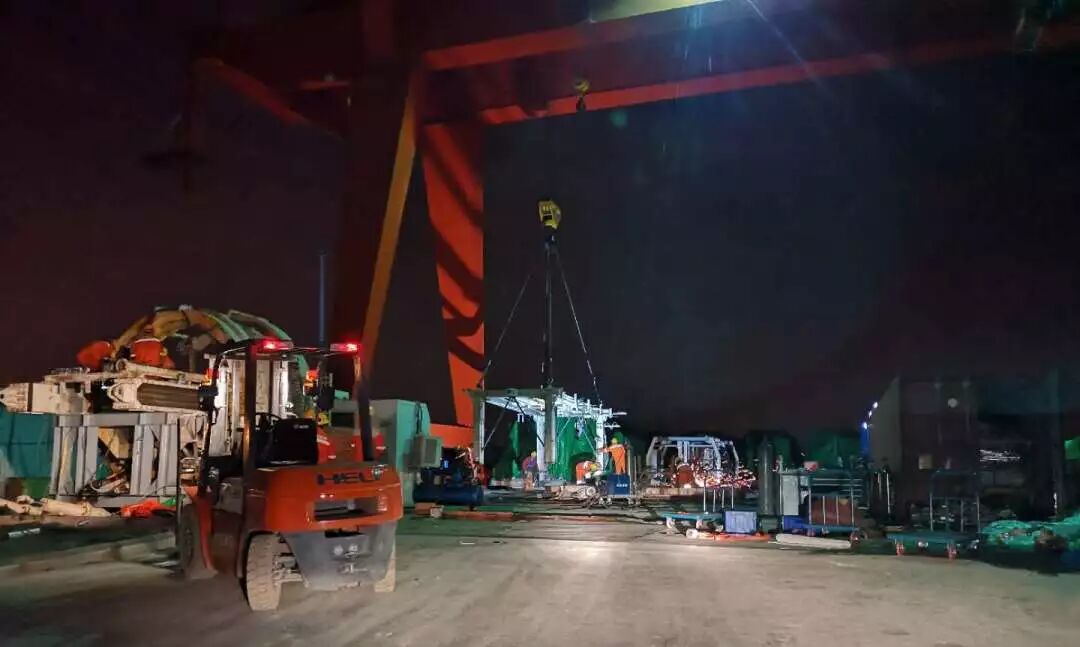 2018年11月,“中铁710号”开始组织生产,担任项目负责人的邓景川接手了这台机器的生产任务。“中铁710号”是从新加坡回来的机器,改造后使用到福州地铁。由于在新加坡进行拆除时当地政府要求必须由外方员工进行拆机,外方员工并没有在拆机时进行有效保护而进行暴力拆机,导致许多本可以继续使用的元器件受损。业主单位不愿意新制,修复这些元器件又需要大量时间,又因为机器从国外回来,在海关验收近一个月的时间,严重制约了工期,全体人员只能加班加点进行施工。由于机器拖车泥土较多不能进厂,只能在室外硬化场地上施工,加上与另一台正在施工的机器工期撞车,邓景川的团队只能加开夜班。人员少、工期紧、任务重,天公还不作美。东疆地处海边,风大寒冷,夜晚更甚,晚间最低温度低至零下12摄氏度,工人们在场地上只能披着棉被干活,即便如此蹲在地上一会腿就冻僵了。在这样艰苦的环境里,邓景川依旧日夜在场地坚守,整整23天。
