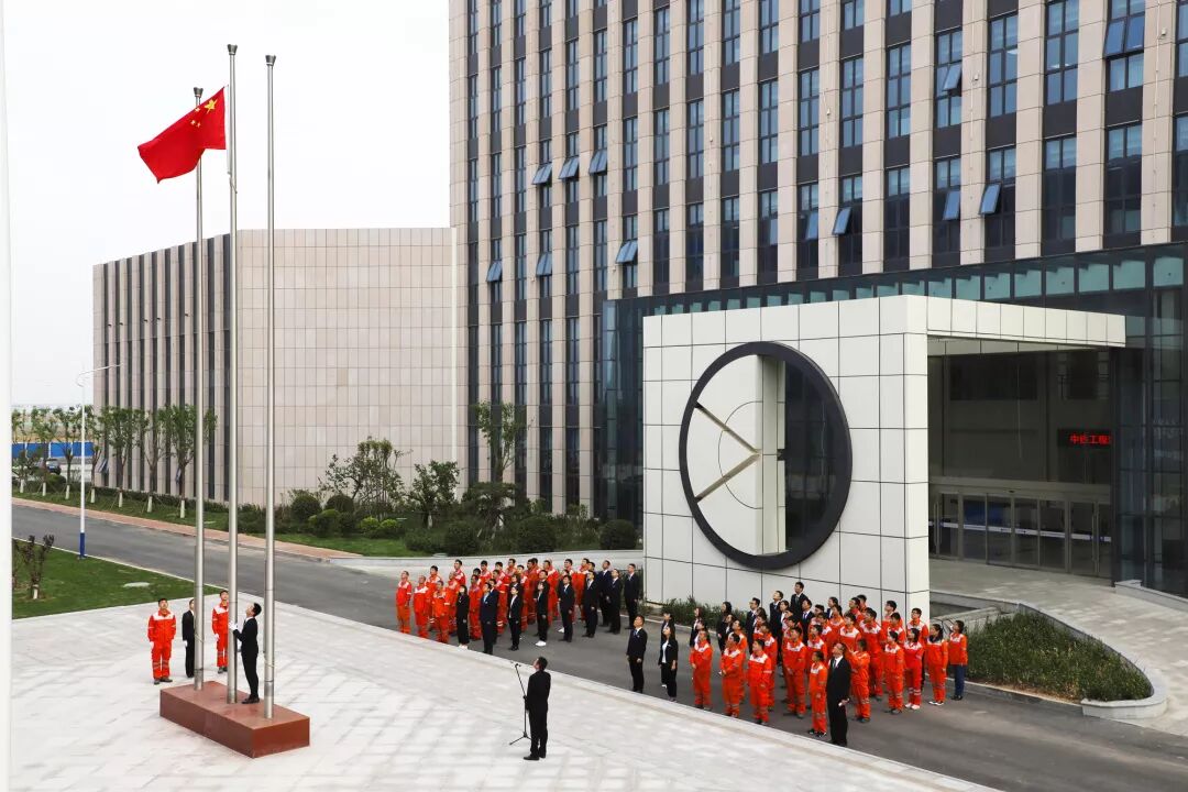 5月10日上午九点,再制造公司在津全体职员在办公楼门前列队肃立,在雄壮的国歌声中,鲜艳的五星红旗在广场上冉冉升起。五年前的今日,习近平总书记视察中铁装备,提出“三个转变”重要指示。为了牢记习总书记嘱托,深度践行“三个转变”重要指示,庆祝“中国品牌日”,再制造公司举行庄严的升旗仪式,仪式由公司党委副书记、纪委书记、工会主席牛雪顶主持。