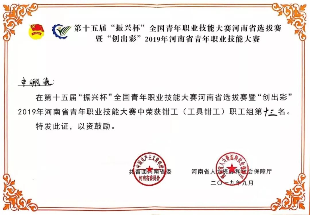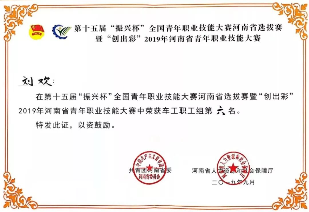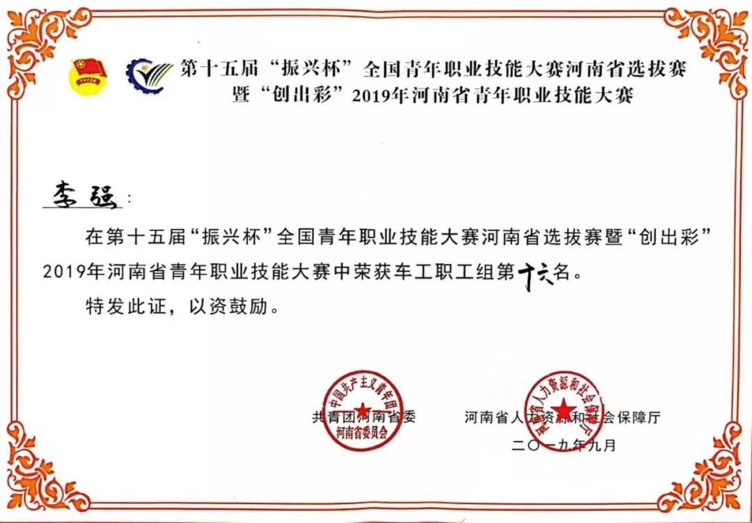 通过理论考试和实操考试两个阶段的比赛,刘欢荣获车工(职工组)第六名、李强荣获车工(职工组)第十六名、申鹏晓荣获工具钳工(职工组)第十三名、侯锡杰荣获工具钳工(职工组)第十四名、刘洋洋荣获维修电工(职工组)第十三名。