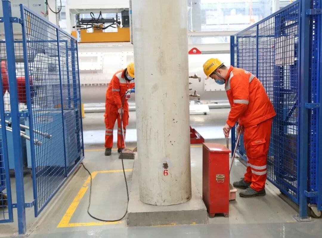 从各部门、车间私人工位区域的清理、消毒开始,到办公室公共区域、车间公共区域的集中清理、消毒,盾构公司郑州基地青年团干、青年志愿者、青安岗、青年突击队集体出动,不留死角大清扫,不遗余力大消毒,50人2小时完成公共区域30000多平方的清扫、消毒工作,用青春筑牢防疫城墙,确保复工后的作业环境健康、安全。