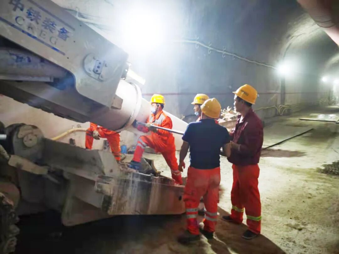 中铁装备集团设备公司为该项目配置两班作业施工服务团队,他们发扬敢打敢拼的精神,在项目快速施工中,坚持设备休人不休,掘进间隙迅速完成截齿更换,保证掘进不间断,完成每班掘进任务后,维保人员立即顶上去,对设备易损件、消耗件进行检修,及时更换,保证设备随时处于临战状态,一声令下,开赴掘进一线,为项目快速建设保驾护航。