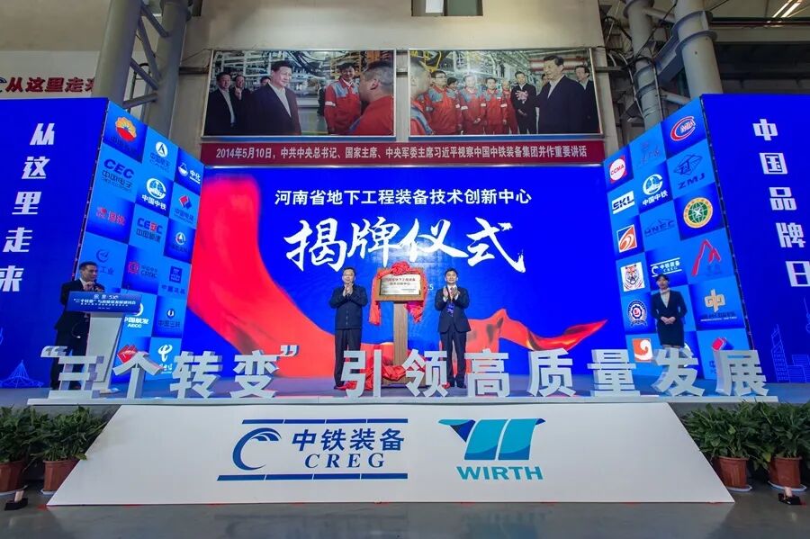 河南省科技厅厅长马刚、中铁装备集团党委书记、董事长谭顺辉为河南省地下工程装备技术创新中心揭牌