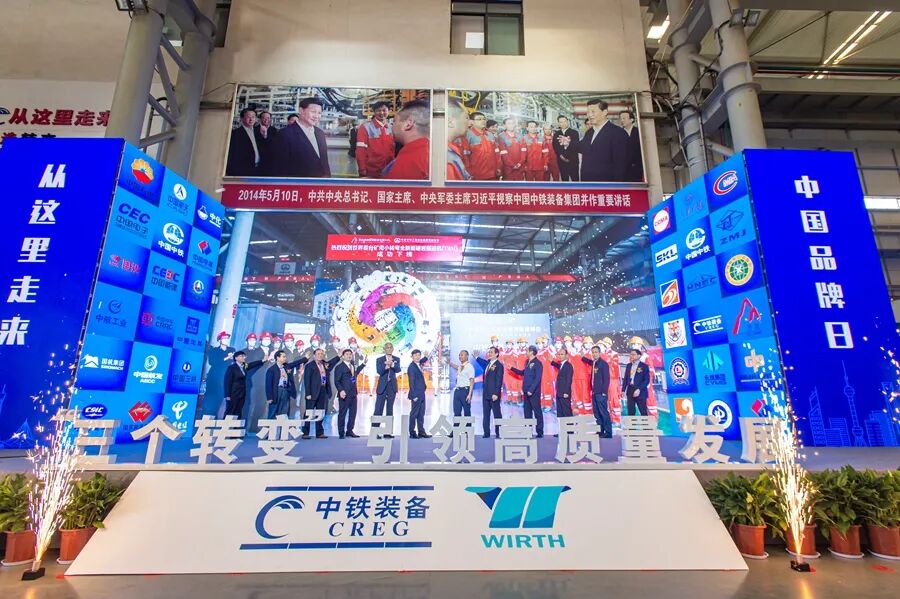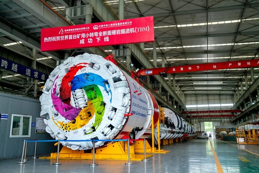 与会领导、专家共同按下屏幕启动手模,世界首台矿用小转弯全断面硬岩掘进机——“贵能一号”TBM正式迎来下线。该设备将用于贵州省四季春煤矿,标志着中铁装备在隧道掘进机领域的研发正朝着更新、更精、更前沿、更广阔的方向不断迈进。