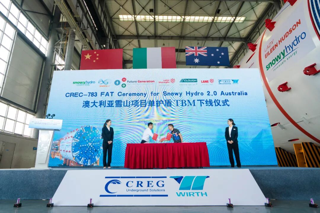 6月18日,中国出口澳大利亚大直径11.09米硬岩TBM(中铁783号)下线仪式在中铁装备国家TBM产业化中心举行,设备将用于澳大利亚Snowy Hydro 2.0(雪山2.0水电站)项目建设,这是我国出口的超大直径硬岩TBM,也是中国硬岩掘进机首次应用于澳大利亚隧洞项目建设。