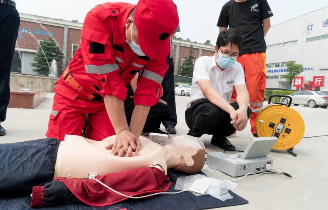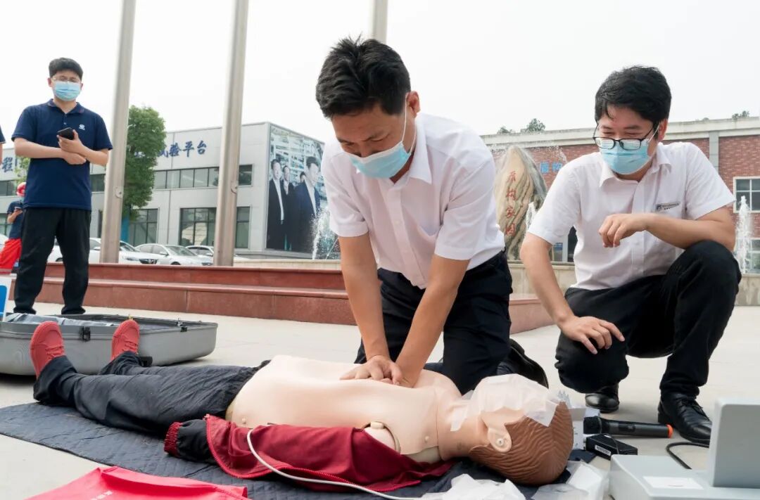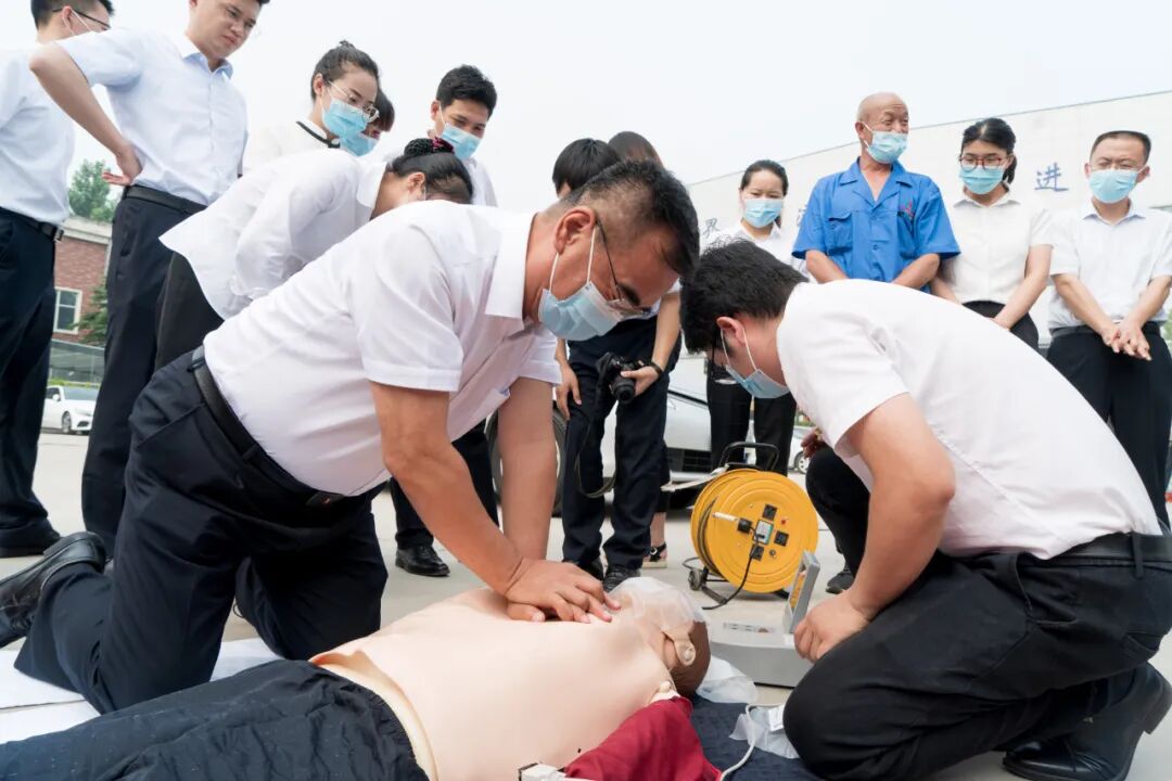 演示心肺复苏急救操作示范,并指导公司人员进行急救操作。