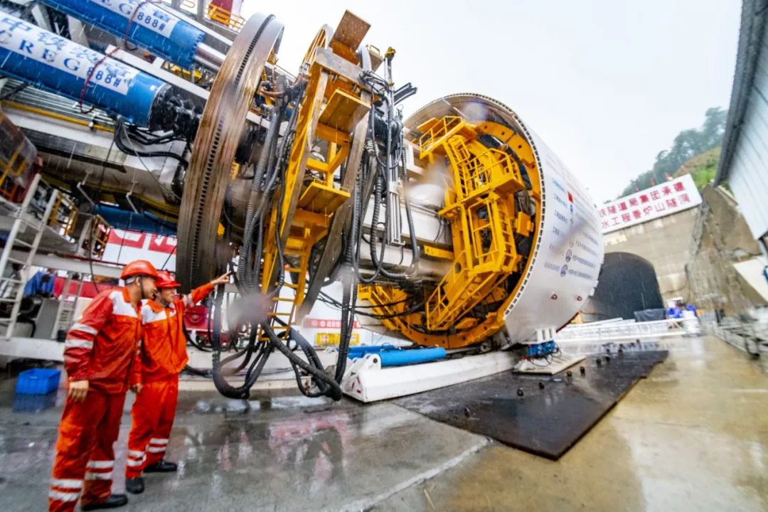 “云岭号”由中铁工程装备集团自主研制,设备开挖直径达到9.83米,全长235米,总重约2050吨,是为适应复杂的地质环境而量身打造的新型装备。设备研发制造团队以安全性、可靠性和适应性为首要准则,针对软岩大变形、断层破碎带、涌水突泥等地质条件进行精准设计,配置了超前地质预报、有害气体检测、应急避险舱等多种功能,为“云岭号”硬岩掘进机量身定制最佳方案,能够创造性解决施工中可能发生的“岩爆、大变形、断层破碎带”等行业性难题,为滇中引水工程安全、优质、高效建设提供了有力保障。