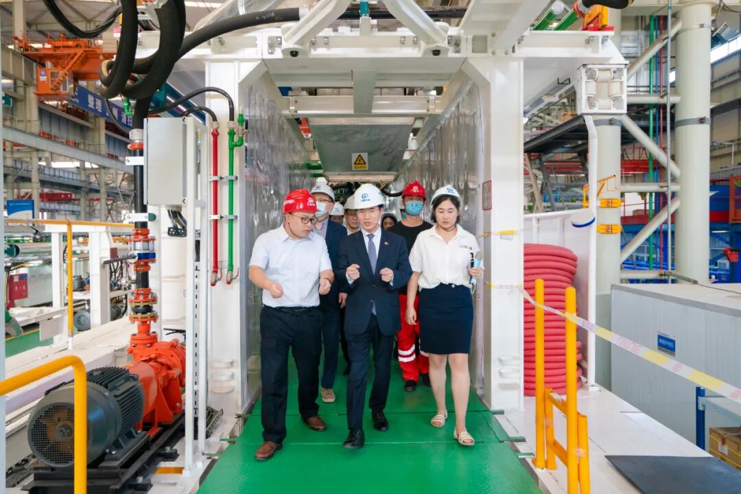 在盾构总装车间,姜承锡详细聆听了中铁装备创新发展历程、企业业绩、领先技术和国内外代表项目,参观了盾构机生产线和现代化管理车间,过程中对中铁装备取得的成绩不断表示赞赏。当了解到中铁装备盾构机全球订单已经超过1000台,应用到中国40多个城市和21个国家及地区,姜承锡再次称赞道:“你们很厉害。”
