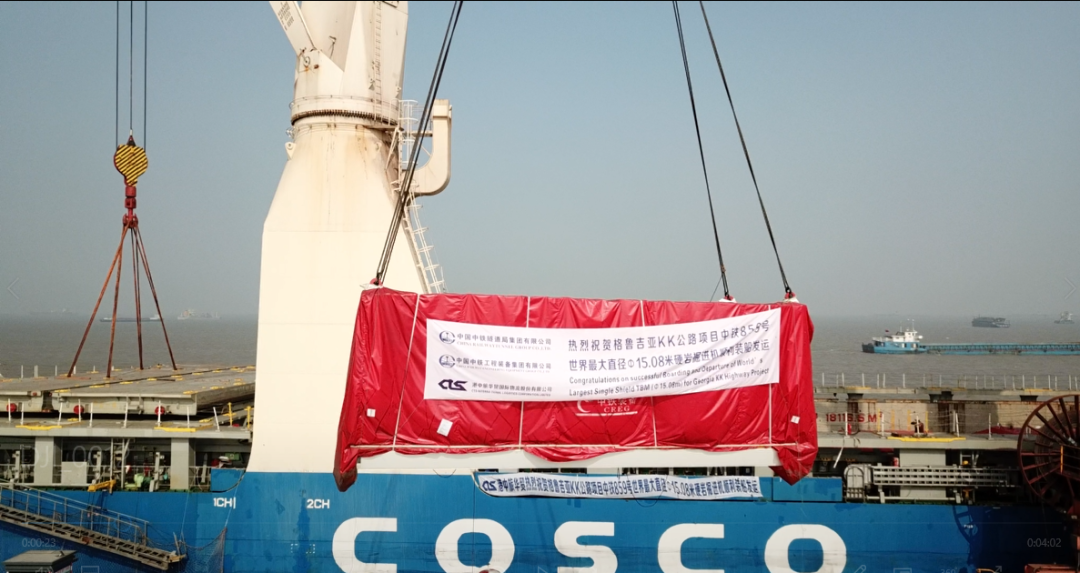 自2020年9月下旬开始,“中铁859号”各部分总成件从郑州、上海等基地陆续发往上海罗泾港和上海洋山港,历时2个半月完成集港。11月19日装载“中铁859号”主机的散装船于上海罗泾港离港,11月27日载有“中铁859号”专用配件的集装箱船也于上海洋山港正式启航,这标志着“中铁859号”所有部件朝着项目所在地集结,预计将于2021年1月初如期抵达格鲁吉亚波季港,为下一步的按时组装始发奠定坚实的基础。