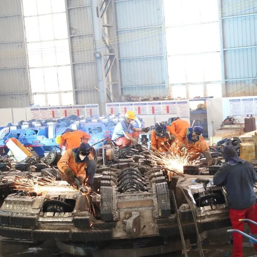 肇庆基地人员共40人,其中党员5人,青年32人。根据肇庆基地的项目特点和实际情况,公司通过整合资源,集中力量,调整思路,在基地创新实行了“1+2+N”人员管理模式,先后配备了一个项目负责人、两个分部负责人、一个安全员、两个技术人员和两个质检人员。以“一个人就是一支队伍”的标准确定技术指导,先后配备了组装、流体、液压、电气、铆焊、机加工等系统的8个技术指导,选派生产骨干前往一线做生产策划、现场指导,切实保障各个环节完美衔接。 面对工期紧、任务重的情况,肇庆基地将工作从产中至产前,做好生产策划,从内向外解决工期推进问题。通过每天早晚例会、周二生产例会、每周一课,对各个项目进行量化管理,细化任务,提前排查,确保数据流动,流程顺畅。以线上生产交流群为载体,进行每日反馈,以发现问题、整改问题、及时反馈切实实现“今日事、今日毕”。生产过程中,质量管理以自检、互检、专检为依托,紧跟过程控制;安全管理中选派专职安全员,辅助青年安质岗岗员、群安员实时现场监督,切实保障安全生产;选派专职技术指导,对工艺设计、操作进行规范,提升技术水平。 肇庆基地作为盾构公司大直径盾体制造基地,同时也是公司珠江三角洲水资源配置工程盾构机生产主战场,重塑机构后分别设置了组装分部和制造分部,每个分部设置专门负责人及技术指导,根据生产任务对人员做动态管理。集团公司项管部人员驻扎驻外一线共同指挥作战,以派遣至肇庆基地的盾构公司员工为主力军,以各个协作队伍以及再制造公司等兄弟单位的支援人员为助力军,各项资源优先协调,多个团队共同发力,助力肇庆基地攻坚克难。 10月31日,中铁884号盾构机在肇庆基地顺利通过验收,这是肇庆基地自成立后验收的第三台盾构机,同时也预示着11月份的生产攻坚任务进入高峰期。肇庆基地目前已完成3台整机、14台刀盘、7套盾体,11月份计划完成6台整机、4台刀盘、9套盾体。盾构公司党委书记、执行董事韩世强到肇庆基地召开了“决战四季度,冲刺保全年”动员大会,并为基地党员先锋队、青年突击队授旗,在慰问期间,号召大家以决战的姿态、决然的精神、决胜的勇气,全力迎战十一月,攻坚四季度,向安全生产、完成全年任务发起最后冲刺。
