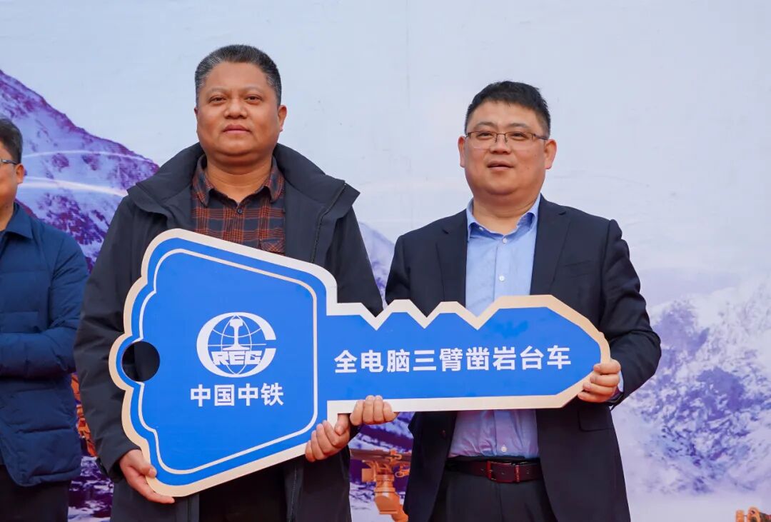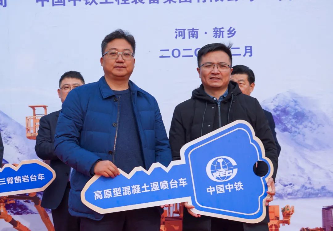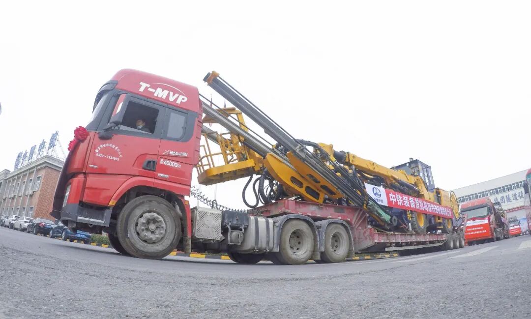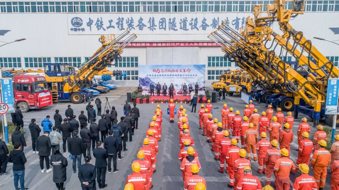 12月9日上午,中铁装备首批高原铁路极端装备交付出征大会在新乡隆重举行,120余人现场见证并欢送首批高原铁路极端装备——全电脑三臂凿岩台车和高原型混凝土湿喷台车正式出征,助力高原铁路隧道建造。