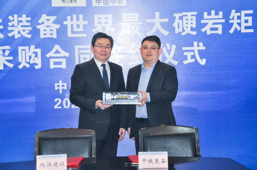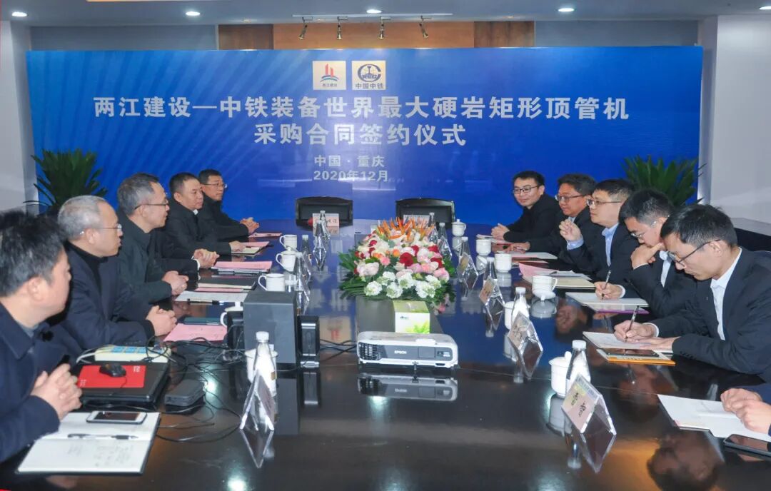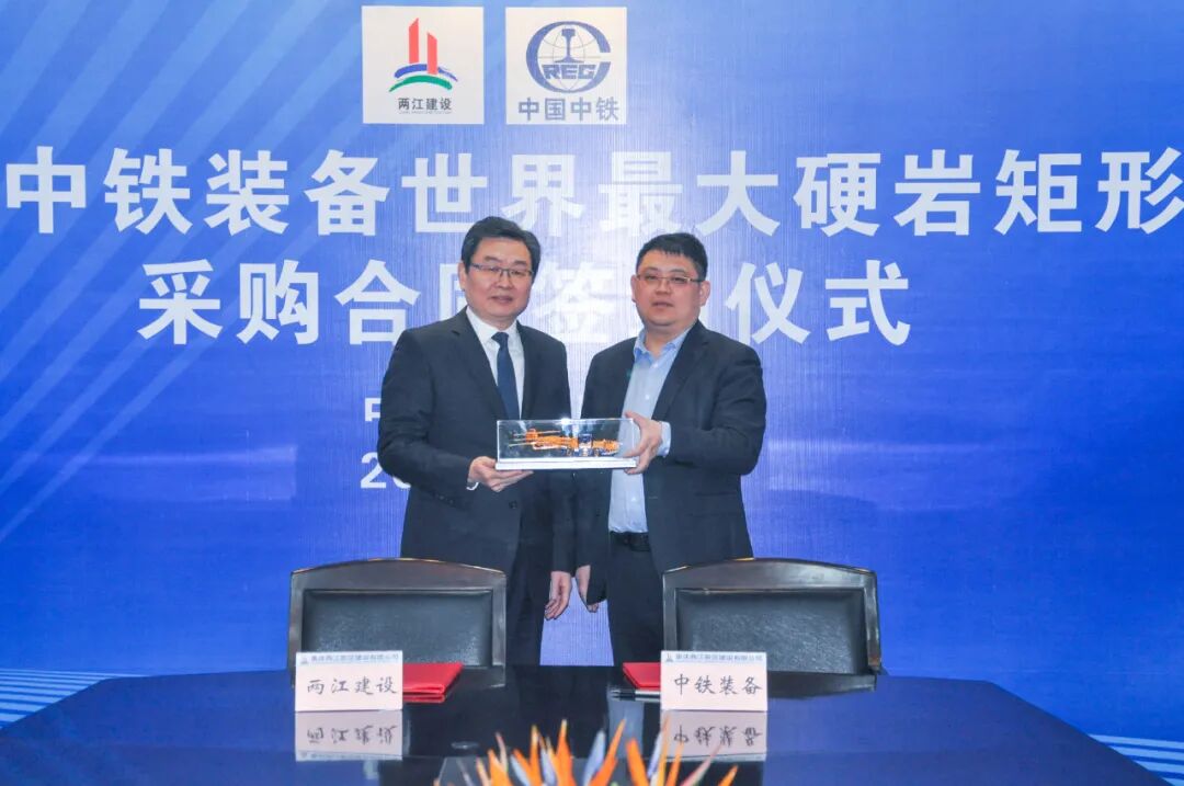 重庆两江建设总经理李斌与中铁装备集团设备公司总经理王锴签订世界最大矩形硬岩盾构机采购合同
