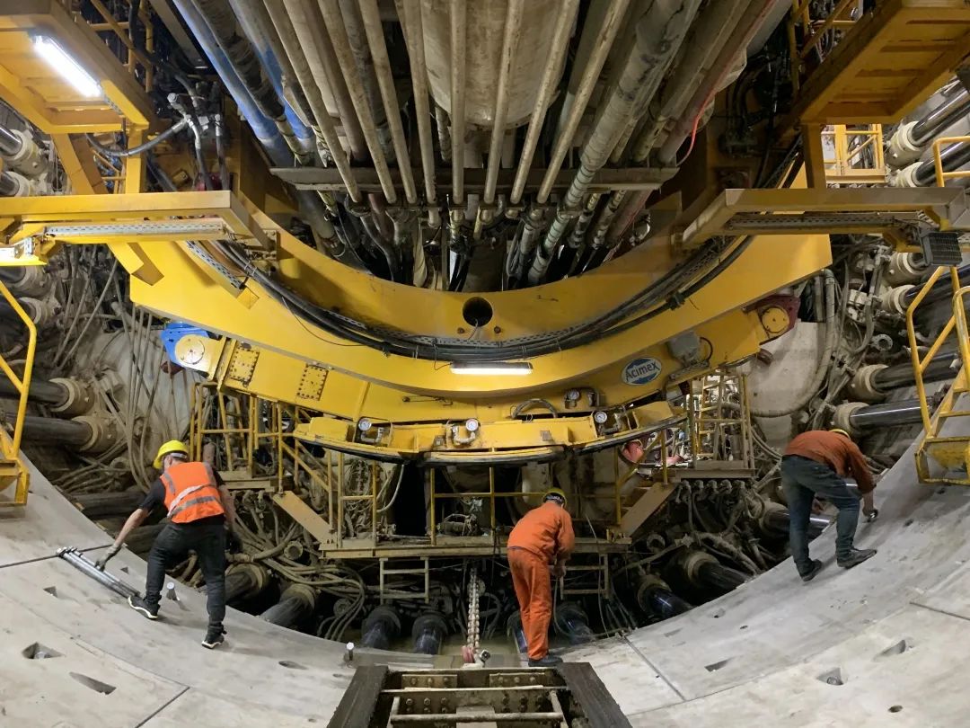 隧道埋深大、水压高,最大水头压力0.5 兆帕,相当于在一个鸡蛋大小的面积上站立3个人所承受的压力。