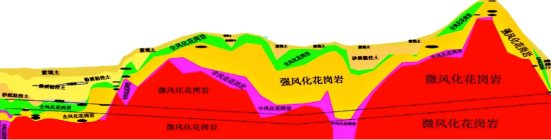 广州地铁七号线二期萝岗至水西区间长1086米,埋深约19—73米。该区间密集分布全断面硬岩地层、软土层、上软下硬地层,盾构机需穿越的硬岩地层长约800米、岩石强度平均为90兆帕,孤石探明率高达66.7%。为确保设备在复杂地质条件中的安全、高效施工掘进,中铁装备创造性地设计制造了集泥水、土压、TBM模式于一身的三模盾构机。