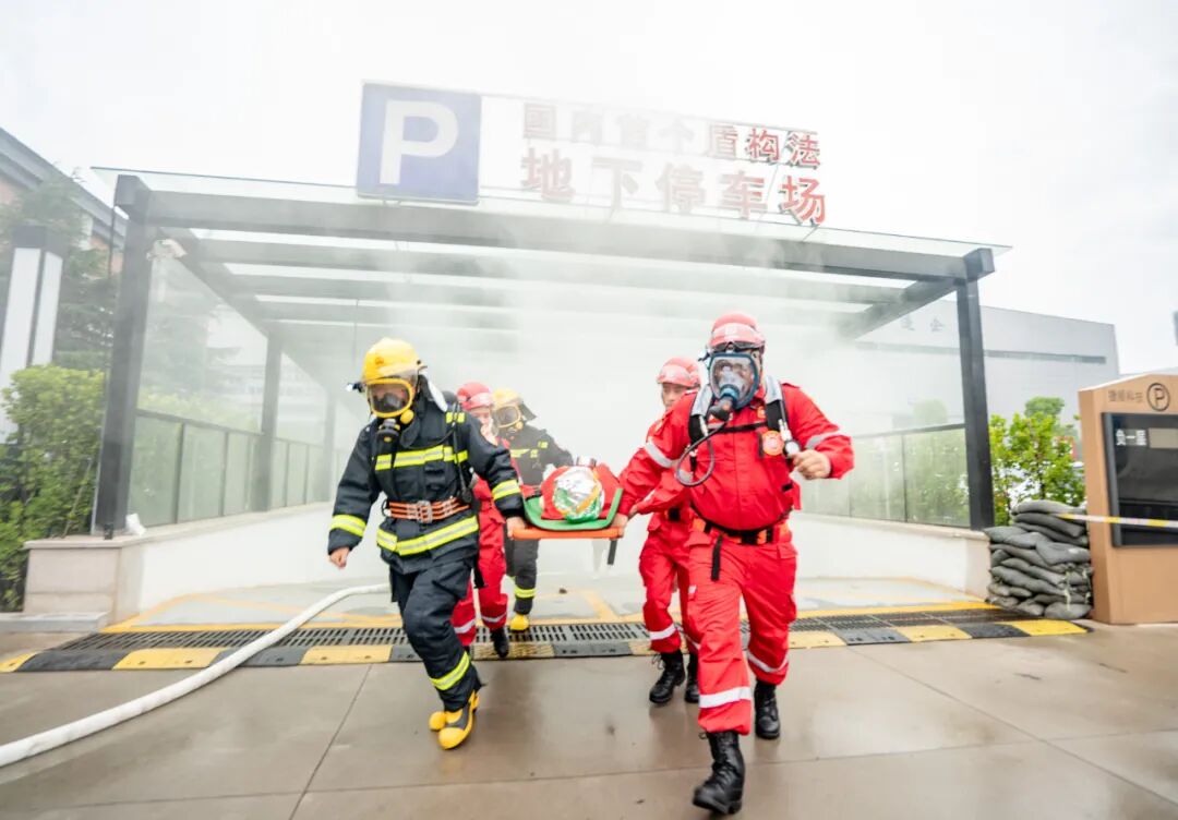 此次安全演练,盾构公司“穿山甲”应急救援队大展身手。盾构公司“穿山甲”救援队在经开区应急管理局的支持下成立,定期开展应急救援知识培训和消防安全演练,练就了过硬的救援本领。