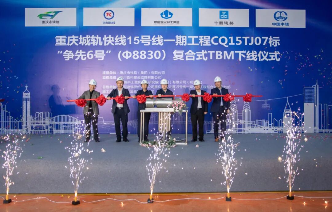重庆市铁路(集团)有限公司业主代表余汪洋,四川铁科、中煤科工监理联合体监理部总监张晓勇,中建铁投轨道交通建设公司副总经理兼隧道工程中心党总支书记、总经理龚道义,党总支副书记、副总经理、工会主席张少华,中国建筑重庆轨道交通15号线一期土建工程联合体总承包部指挥部党总支副书记、执行指挥长肖正东,中铁装备总经理张志国等领导出席仪式。