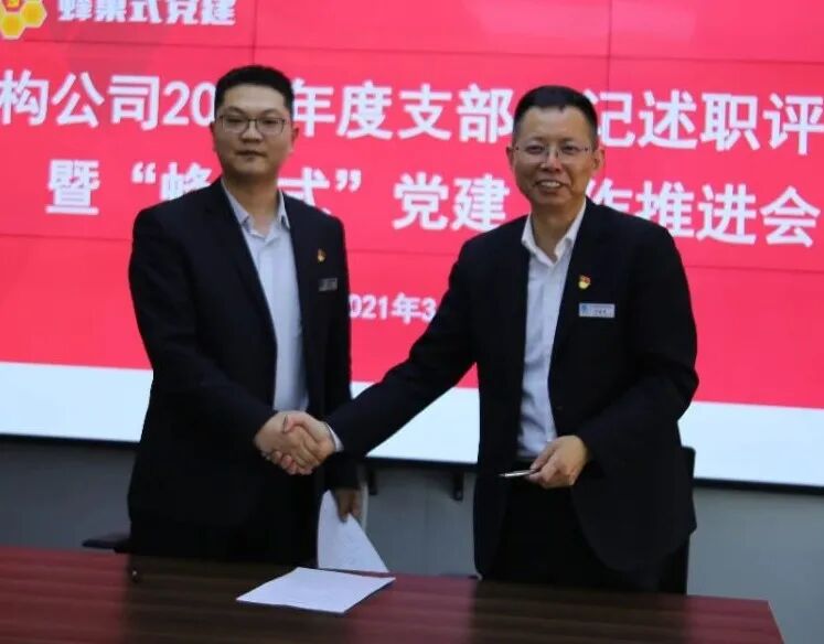 许发成分别对各支部书记现场述职逐一点评,既肯定成绩,又指出不足,并对进一步做好支部党建工作提出了努力和改进方向。他对下一步基层党建工作提出要求:一要加强党的宣传工作,特别要加大先进典型、先进人物事迹的宣传力度,在车间一线通道增添党员专栏、先锋模范专栏等,树立形象宣传标杆,积极营造浓厚的文化氛围,引导广大党员群众向先进学习。二要加强驻外党员组织生活参与度,与长期驻外党员建立沟通联系机制,通过网络视频连线等形式促进驻外党员参加组织生活,让他们真真切切感受到组织的关怀和存在。三要发挥党员先锋模范带头作用,切实加强人才队伍建设,引导广大党员在工作岗位上做表率、争先锋,积极做好“传帮带”,提高专业技能人才培养。