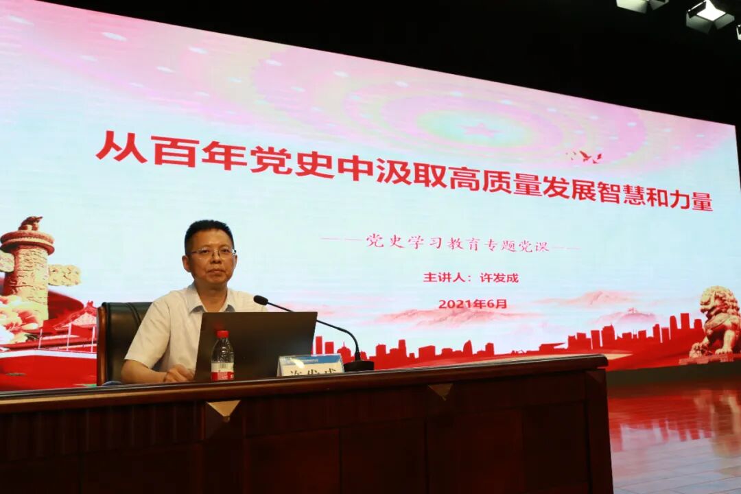 最后,许发成同志为大家讲授了题为《从百年党史中汲取高质量发展智慧和力量》专题党课,主要围绕党史学习教育、党史历史故事及公司目前面临的新形势和新任务等三个方面做了全面剖析和阐述,内容详实而又丰富。同时要求公司基层党组织和广大党员干部要充分发挥支部战斗堡垒作用和党员先锋模范作用,充分调动广大员工群众的积极性、主动性和创造性,全面掀起生产经营大干热潮,为全面完成年度各项目标任务而不懈奋斗。