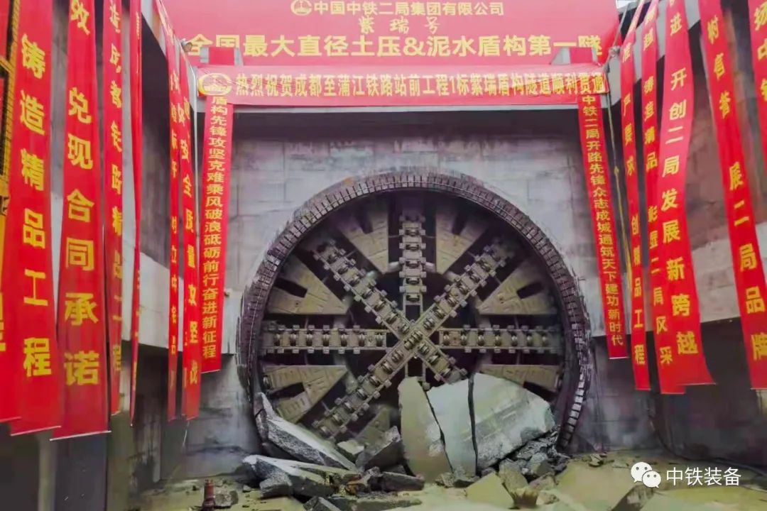 “紫瑞号”开挖直径12.84米,土压模式、泥水模式之外,新增加卵石地层新型泥水模式,得到成功应用,为大直径泥水盾构解决滞排问题提供了新的解决方案。成蒲铁路紫瑞隧道盾构段长1326米,自2021年2月26日盾构始发以来,在公司技术服务团队和施工方的通力合作下,“紫瑞号”成功穿越成都地铁5号线、地铁7号线,取得了最高月进尺303米,最高日进尺16.5米好成绩。