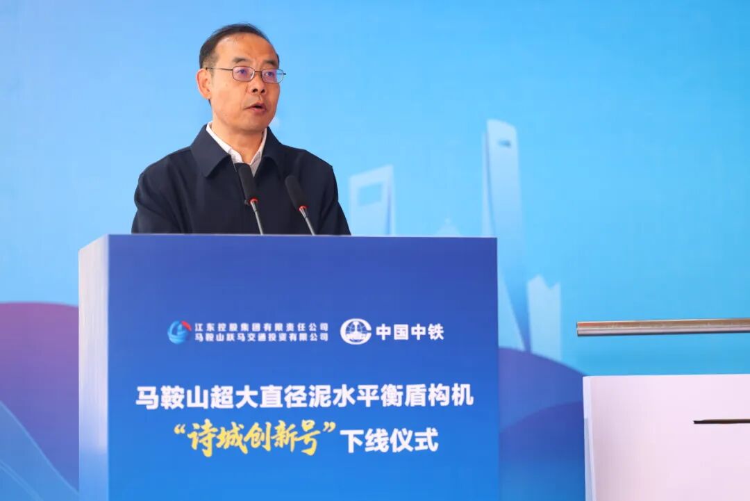 江东控股集团董事长张邦彦,马鞍山跃马交通投资有限公司董事长王辰,铁四院皖江分院院长刘小强,上海地铁咨询监理科技有限公司、上海建科工程咨询有限公司董事长钟海荣,中铁隧道局副总经理胡景军,中铁四局城轨分公司总经理陈广巧,中铁装备党委副书记、总经理卓兴建等领导出席下线仪式。