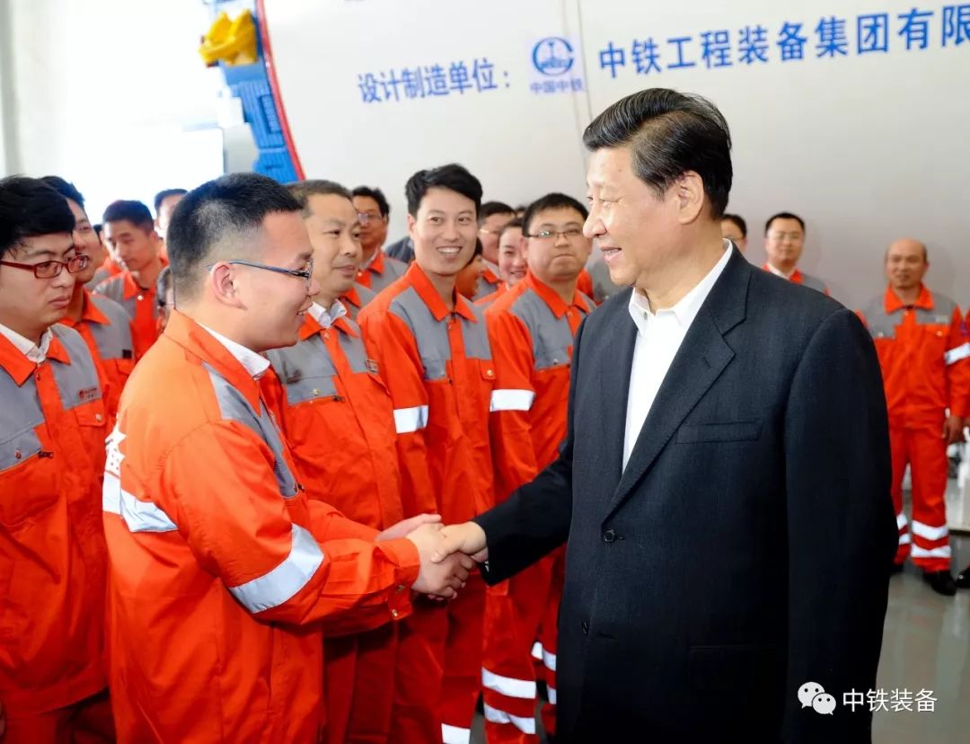 2014年,习近平总书记视察河南时,走进中铁装备总装车间,登上我们的隧道掘进机,详细了解了隧道掘进机的研发生产情况。总书记称赞“你们的事业很有意义”,总书记嘱咐我们要积极抢占世界掘进机技术制高点,总书记勉励我们要推动“中国制造向中国创造转变、中国速度向中国质量转变、中国产品向中国品牌转变”!