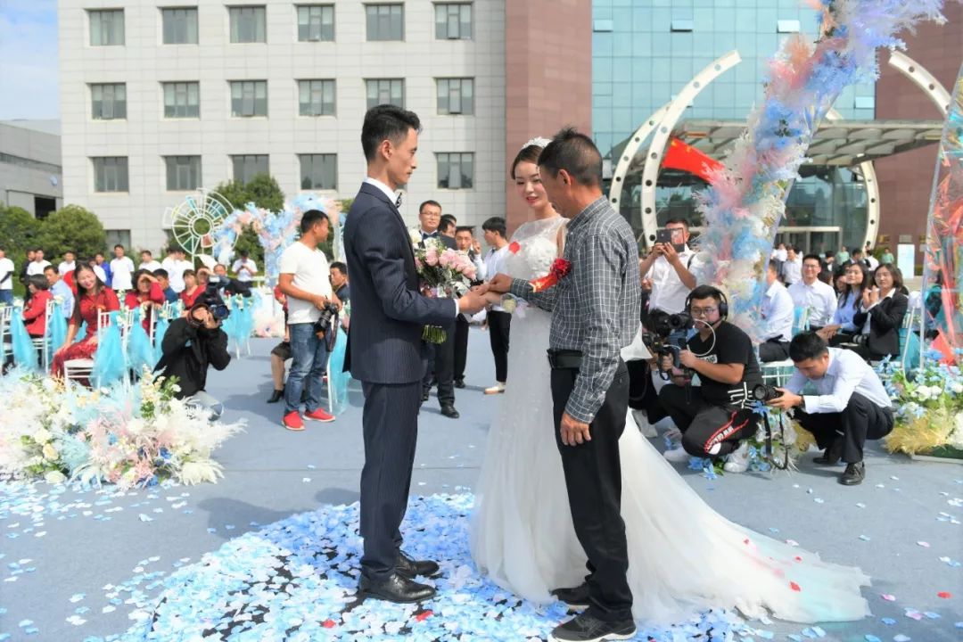 9月20日,在新中国成立70周年即将来临之际,在中铁装备“同心圆”广场,一场爱情的盛典如约而至——“情定装备,十全十美”主题婚礼隆重开幕。