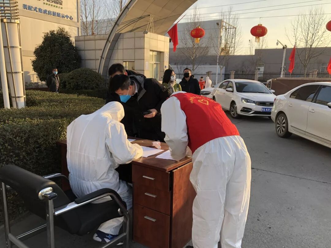 目前部分员工已经复工,上班高峰期人员相对集中,为保障人员不聚集,尽快完成体测登记,中铁装备团委安排志愿者协助门岗完成每日上班监测登记。