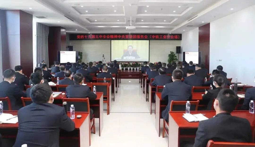 11月9日,学习贯彻党的十九届五中全会精神中央宣讲团国资国企系统报告会在京举行。中央宣讲团成员、国务院国资委党委书记、主任郝鹏作宣讲报告。国资委党委委员、副主任翁杰明主持报告会。国务院国资委机关、中央企业、地方国资委、国有企业在北京主会场和1.5万个分会场近30万名干部职工参加报告会。中国中铁党委第四巡视组组长李辉、副组长韩凤岩,中铁工业在家领导班子成员,三总师副职,机关各部门、在京直属机构负责人,以及部分党员代表通过视频联线形式在中铁工业分会场参会。