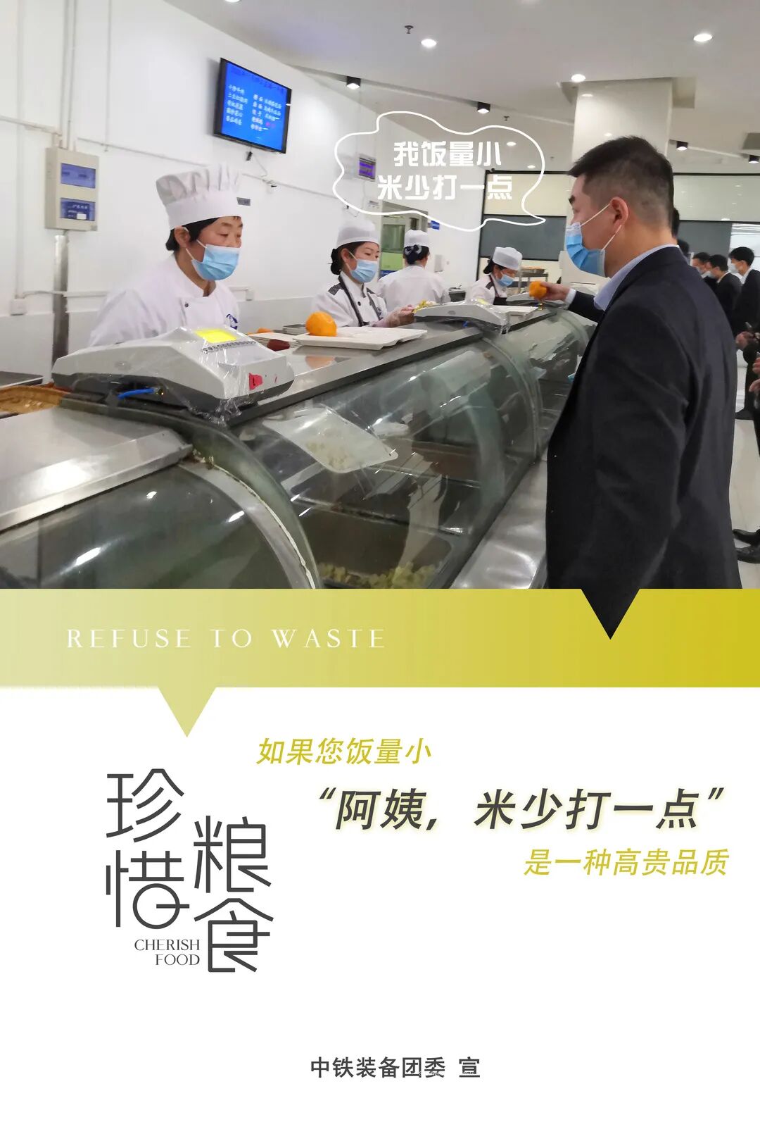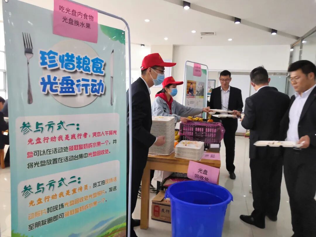为贯彻落实习近平总书记对制止餐饮浪费行为的重要指示精神,11月16日至20日,集团公司团委与总部基地食堂联合组织了“珍惜粮食 光盘行动”光盘换水果活动,通过一周的持续活动和宣传,提升了员工的节约意识和光盘意识。