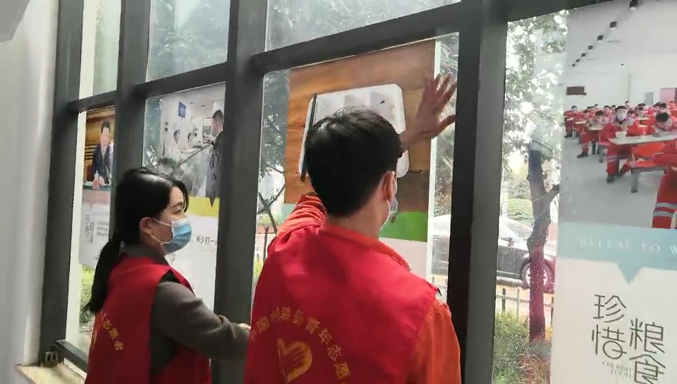 在活动前,志愿者在食堂东西两个门口粘贴了节约粮食的宣传海报,海报向员工传达了光盘行动的国家号召和人人有责的责任意识,通过海报的视觉覆盖,让员工在进入食堂的时候,起到一个很好的提醒作用。
