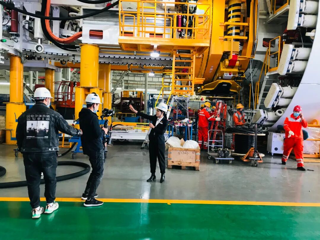 装备小姐姐结合车间里的盾构机实物以及盾构机的照片、施工视频和工作原理动画,为远在千里之外的小朋友们,讲解什么是盾构机、中国盾构机发展历程、盾构机主要部件、工作原理等。