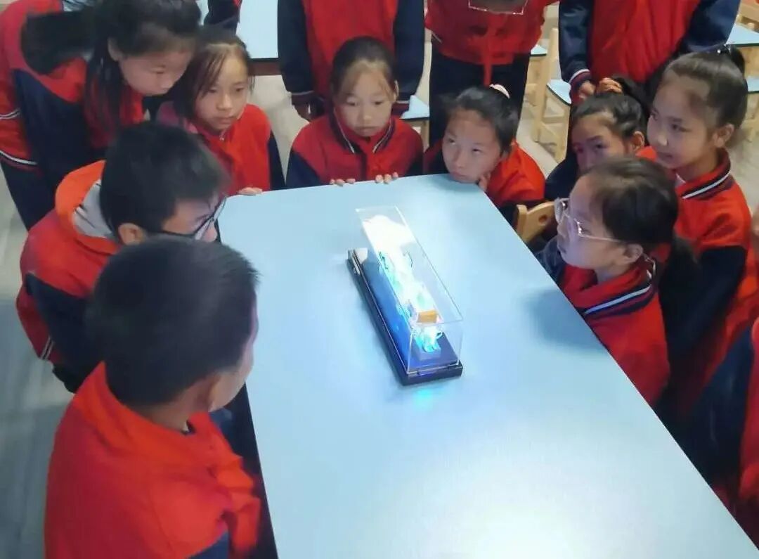 在千里之外的东洛中心小学,孩子们听完装备小姐姐的讲述,围成一圈,认真观察着摆放在梦想教室课桌上的“彩云号”模型,一双双小眼睛里透露着对新知识的渴求与向往。